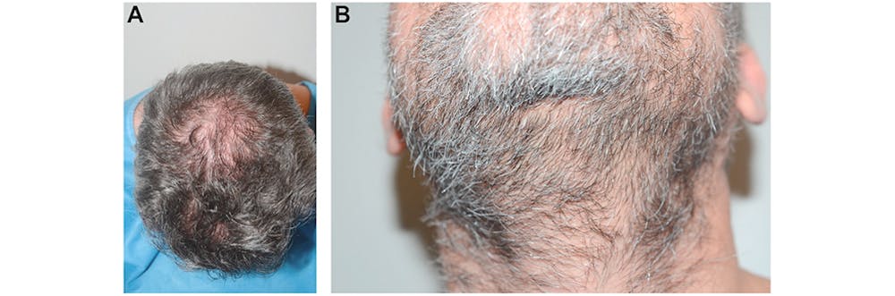 Consultation with the patient can be done either in person or virtually, as well as by photographic review. It is possible for patients to return to public as soon as 1 or 2 days later wearing a mask, and by 5 to 6 days, most patients are fully presentable. Shaving of the beard in the recipient-site area is permitted 10 days postprocedure, whereas the donor area of the beard may be shaved 1 week postprocedure. Younger patients, at risk of developing male pattern hair loss, must be advised that any grafts used in the beard will be unavailable for transplantation into the scalp, thereby reducing the amount of possible coverage. With the advancement in FUE techniques, patients can have both a shaved head and a full beard, a commonly desired look. If patients desire additional density with a second procedure, this can be performed as early as 8 months later. Patients with light skin and dark, fine hair may be particularly interested in this option.