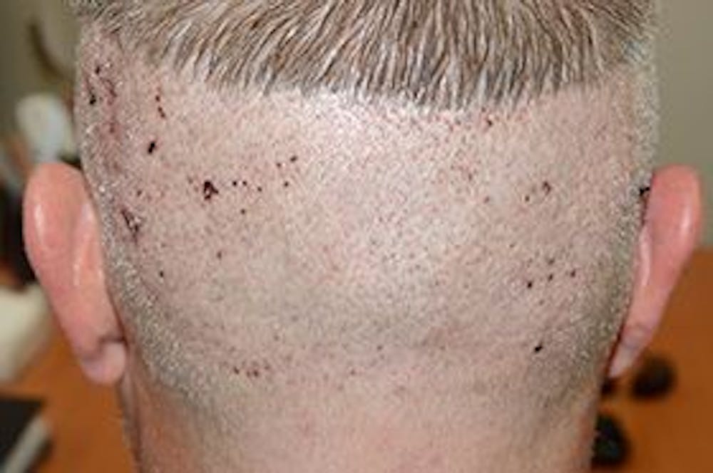 Ingrown hairs may occur within the first months following a hair transplant and they look like skin pimples or lesions. A patient may develop this as the new hair is beginning to grow.